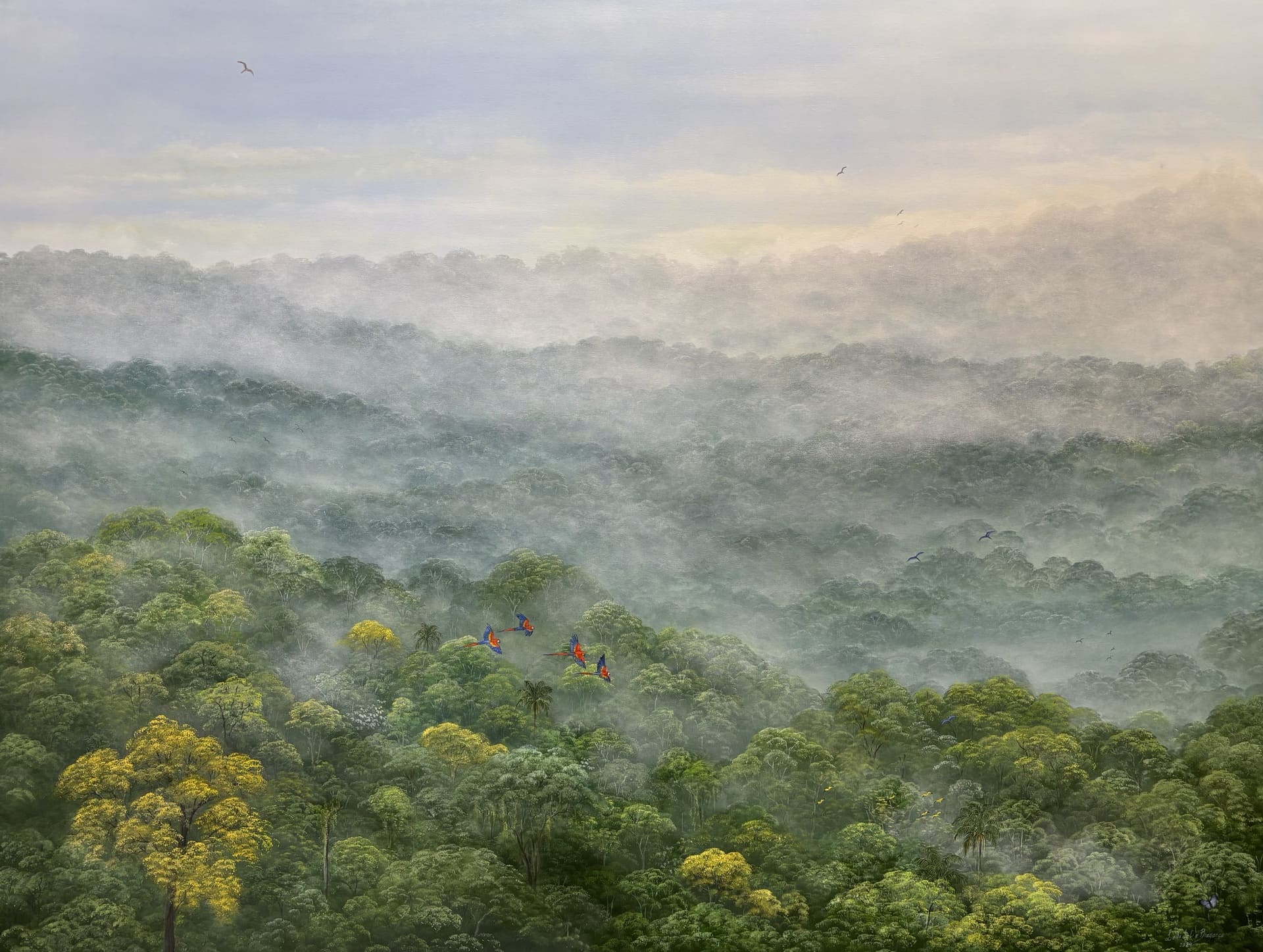 Entre exuberantes florestas tropicais retratadas em inúmeros tons de verde, que vão se revelando através da névoa, pássaros em voo e borboletas, Lelli sublima com delicadeza a beleza dos universos tropicais em suas telas e apresenta suas obras mais recentes nesta exposição.